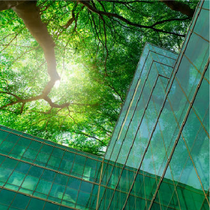 GX(グリーントランスフォーメーション)社会の実現に向けて、建物の施工段階と運用段階、またオフィスや向上は撤去まで視野に入れた環境配慮型にシフトしています。